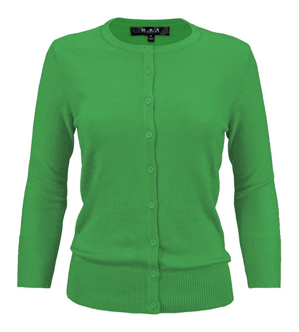 - 22\"-23\" Length, 3/4 Sleeves, Button Down, Basic, Daily, Casual, Crewneck Knit Cardigan Sweater