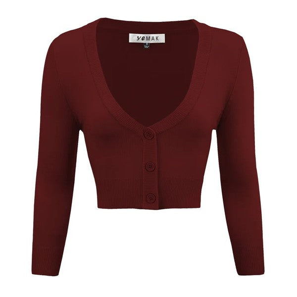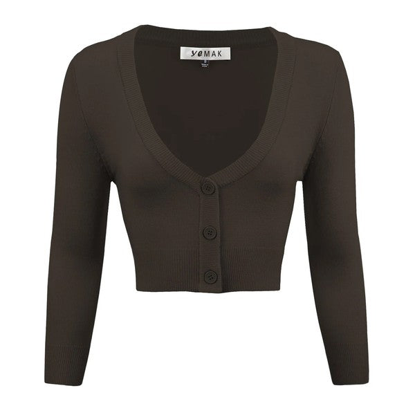 Women's Cropped Bolero 3/4 Sleeve Cardigan S-XL