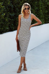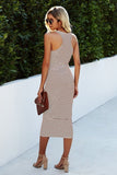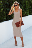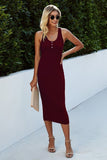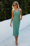 Button Scoop Neck Solid Slim Midi Bodycon Dress