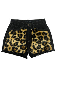Denim Short with Faux Fur Leopard Sizes S-XL