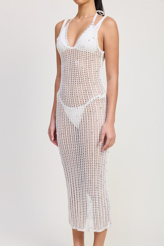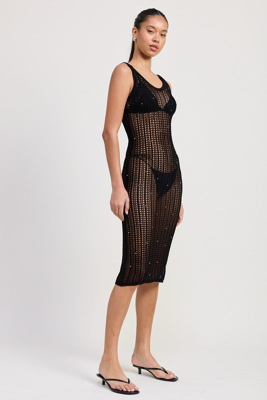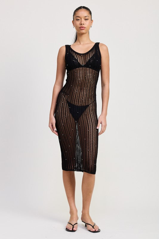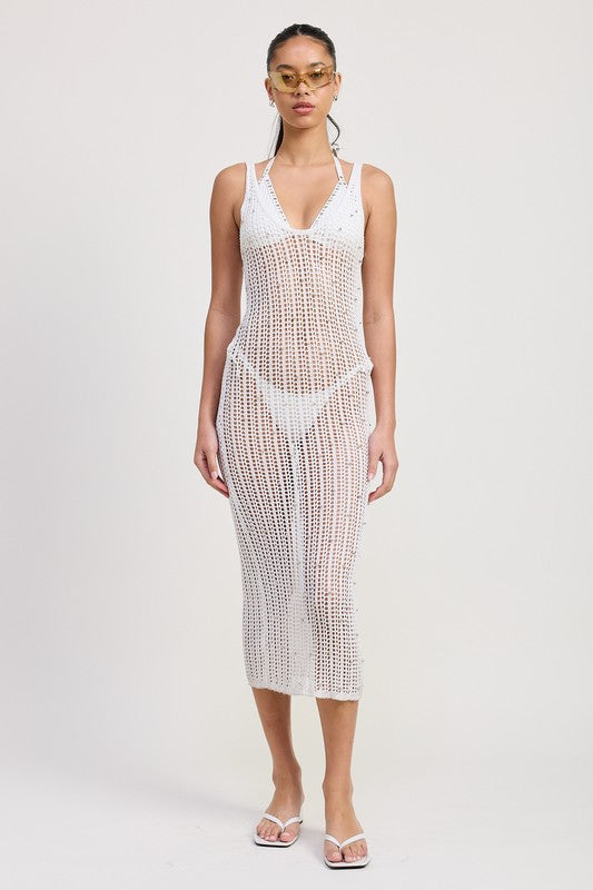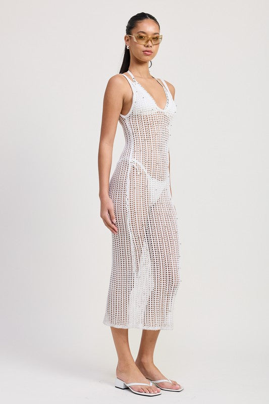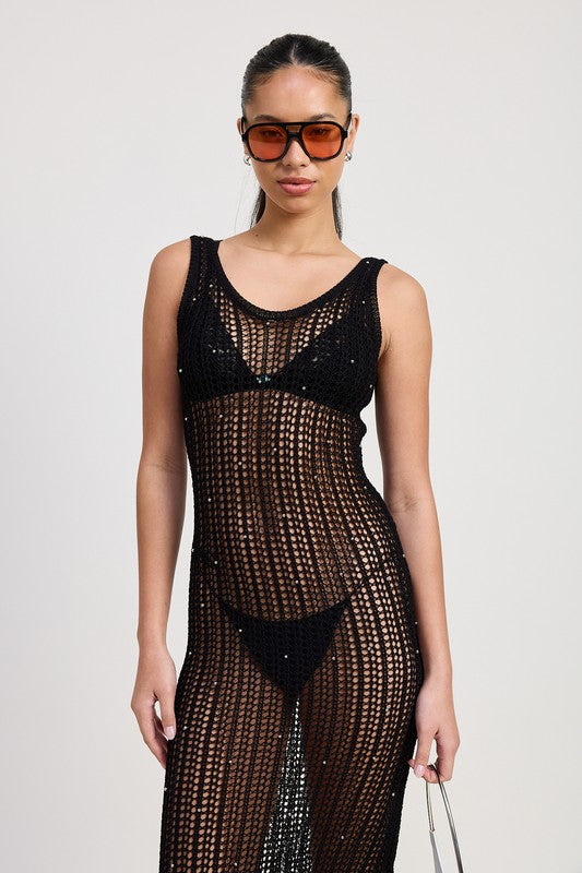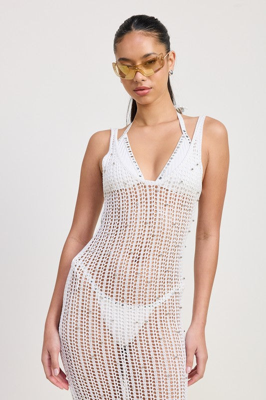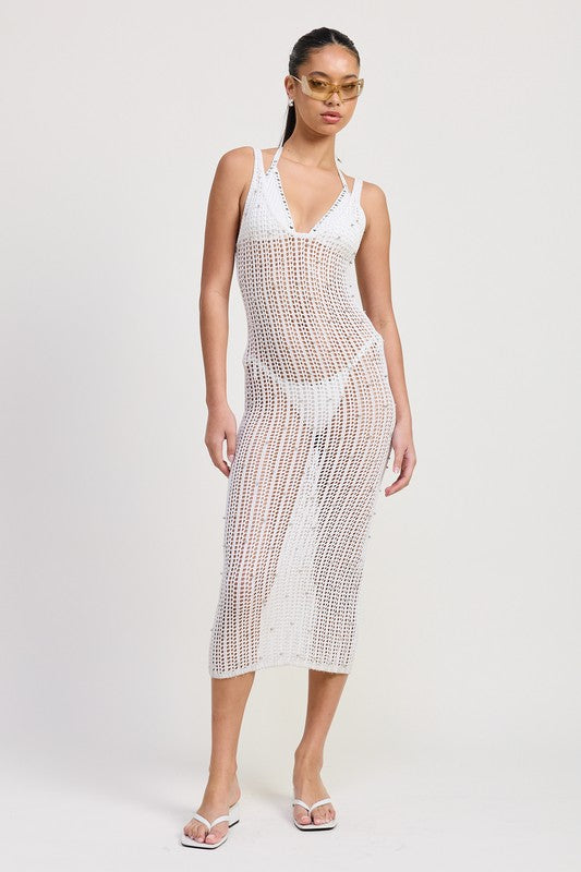 Maxi Crochet Metallic Beaded Coverup- 2 Colors Available